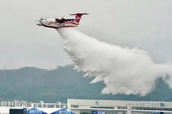 2021年,AG600技術驗證機在成功實現陸上、水上和海上首飛后,首次在國際航展上進行9噸投水演示,向公眾展示其滅火任務系統功能。